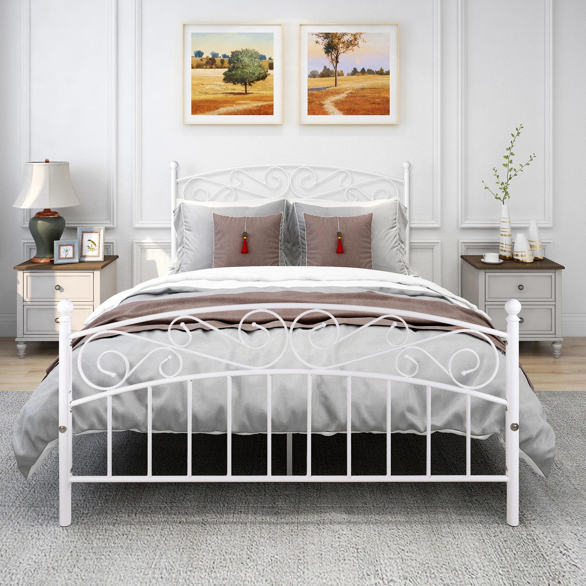 Queen Size Bed Frame Headboard Footboard Iron Scrollwork Victorian Antique Metal Marco De Cama De Hierro Muebles De Dormitorio Modernos Decorar Dormitorios