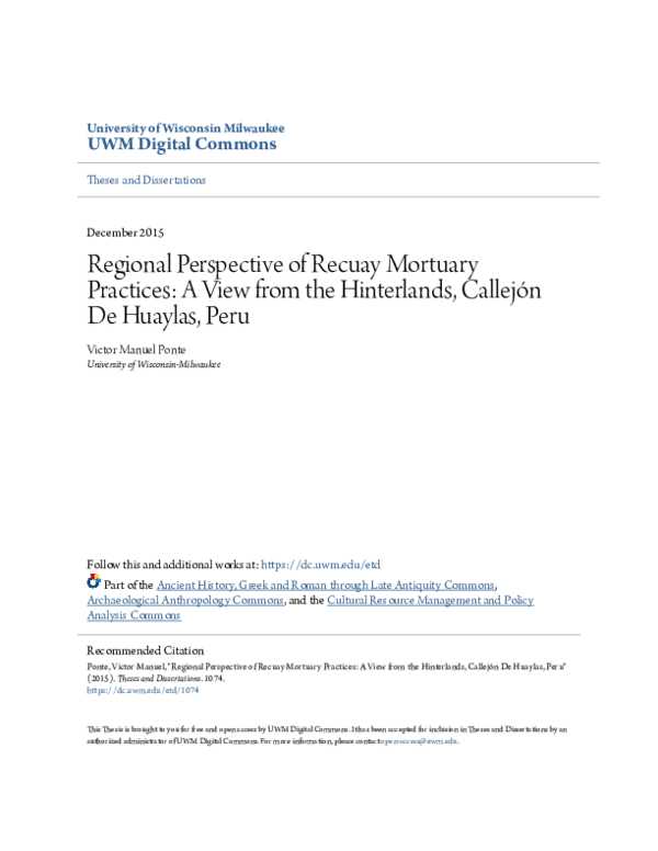Pdf Regional Perspective Of Recuay Mortuary Practices A View From The Hinterlands Callejon De Huaylas Peru Victor Ponte Academia Edu