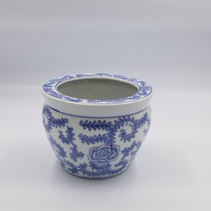 Oriental Furniture Elegant Oriental Planter Pot 12 Inch Fine Chinese Auftragsporzellan Fishbowl Ming Blue And White Flower Pattern Amazon De Home Kitchen